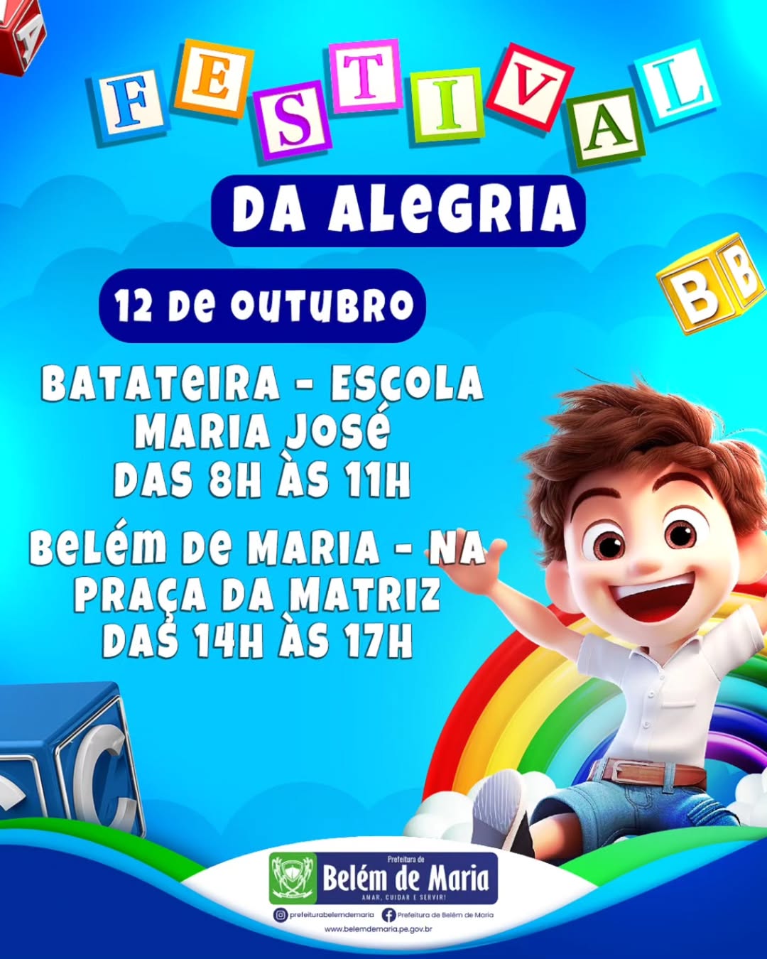 Alô, criançada de Belém de Maria e Batateira! O Festival da Alegria está chegando!