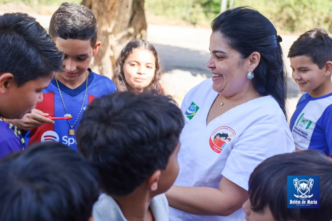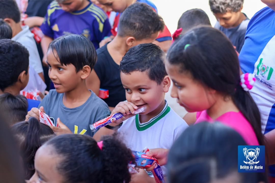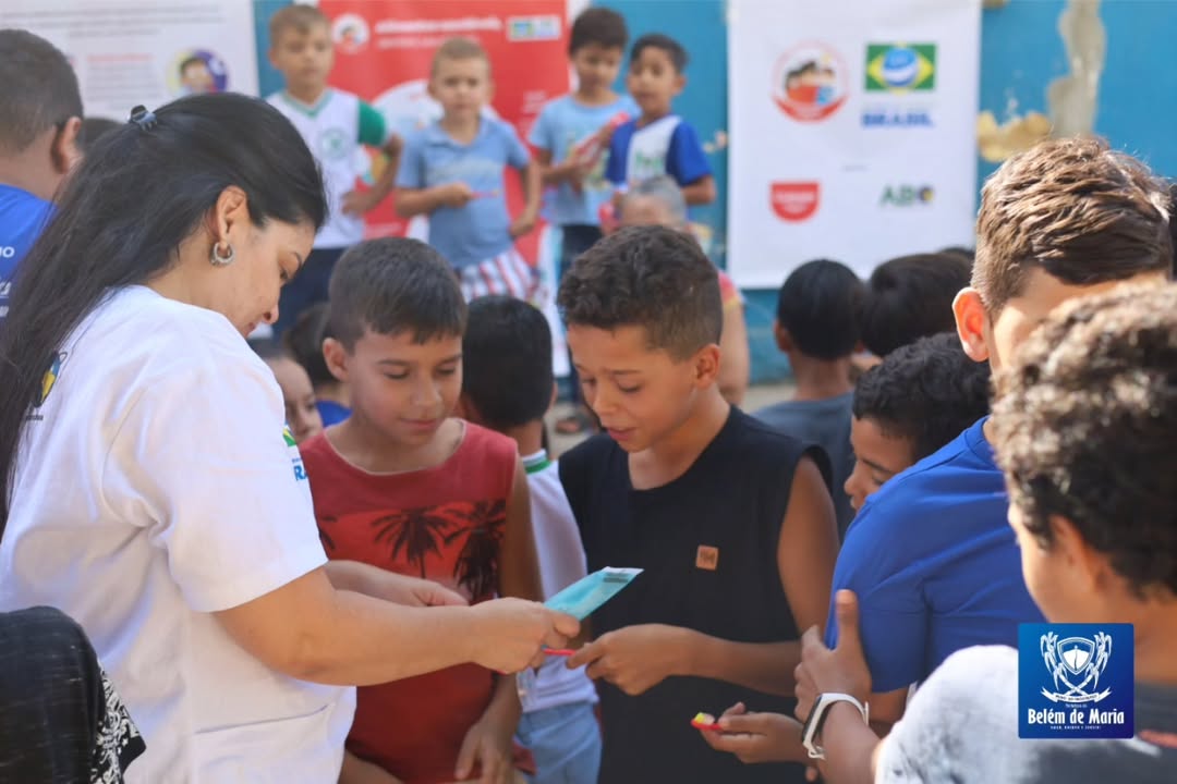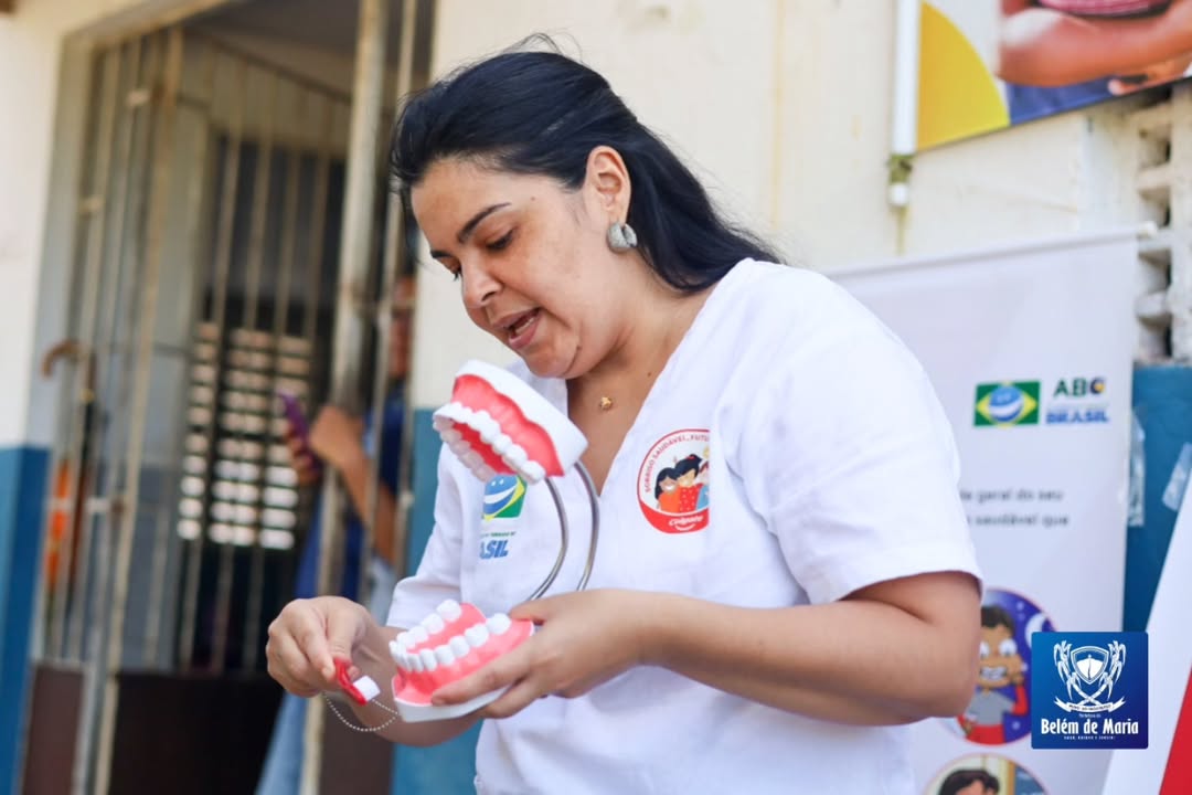 A ação foi voltada a saúde bucal, onde os profissionais ensinaram os alunos sobre a escovação correta e distribuíram kits de higiene bucal para todas as crianças.