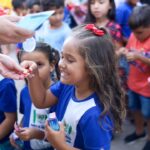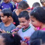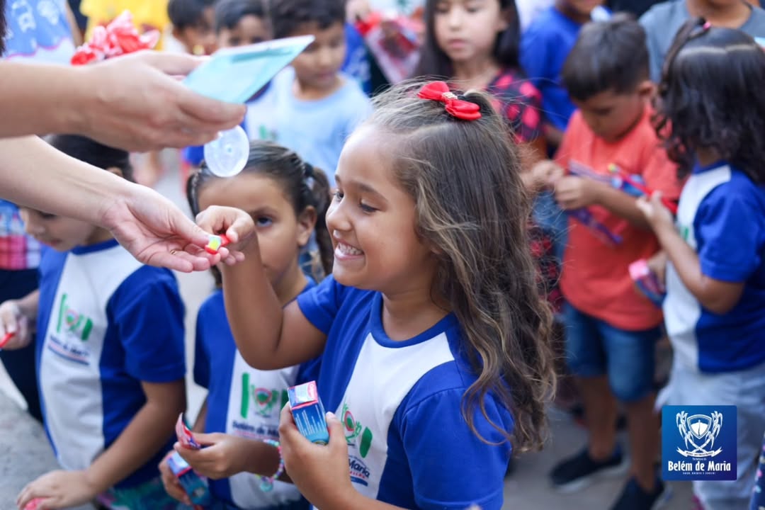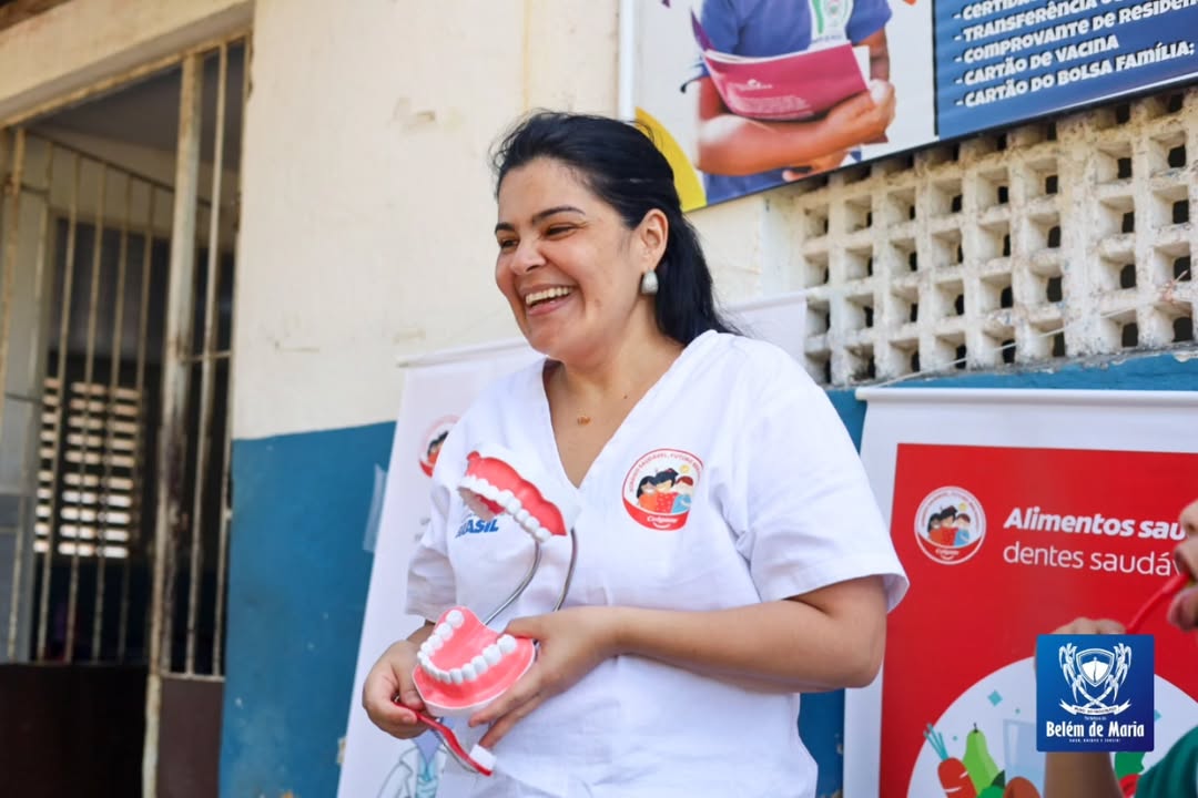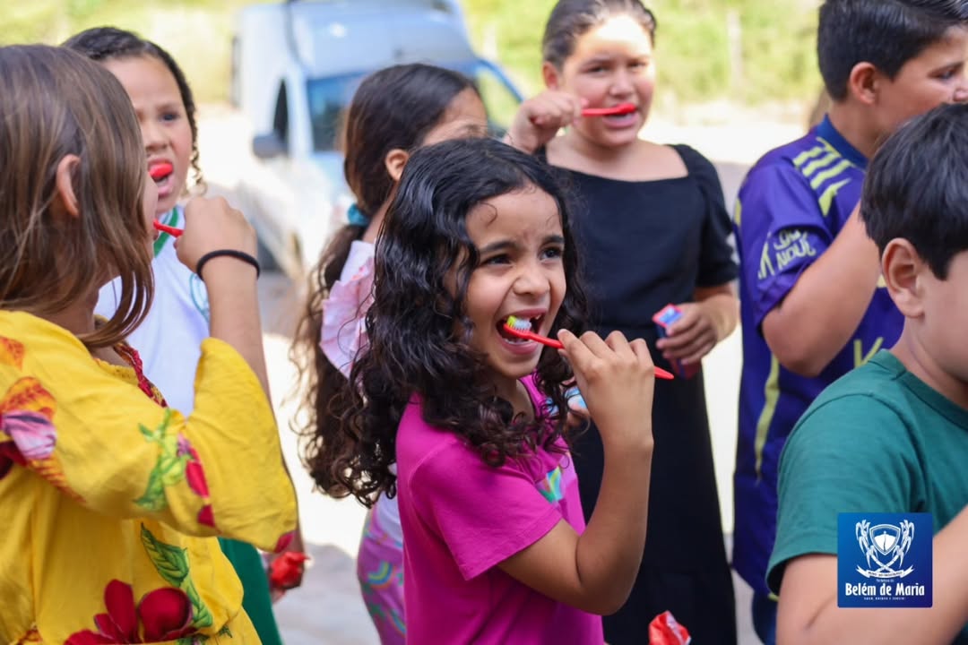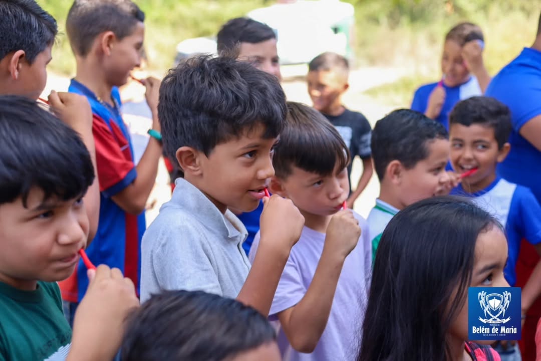 A ação foi voltada a saúde bucal, onde os profissionais ensinaram os alunos sobre a escovação correta e distribuíram kits de higiene bucal para todas as crianças.