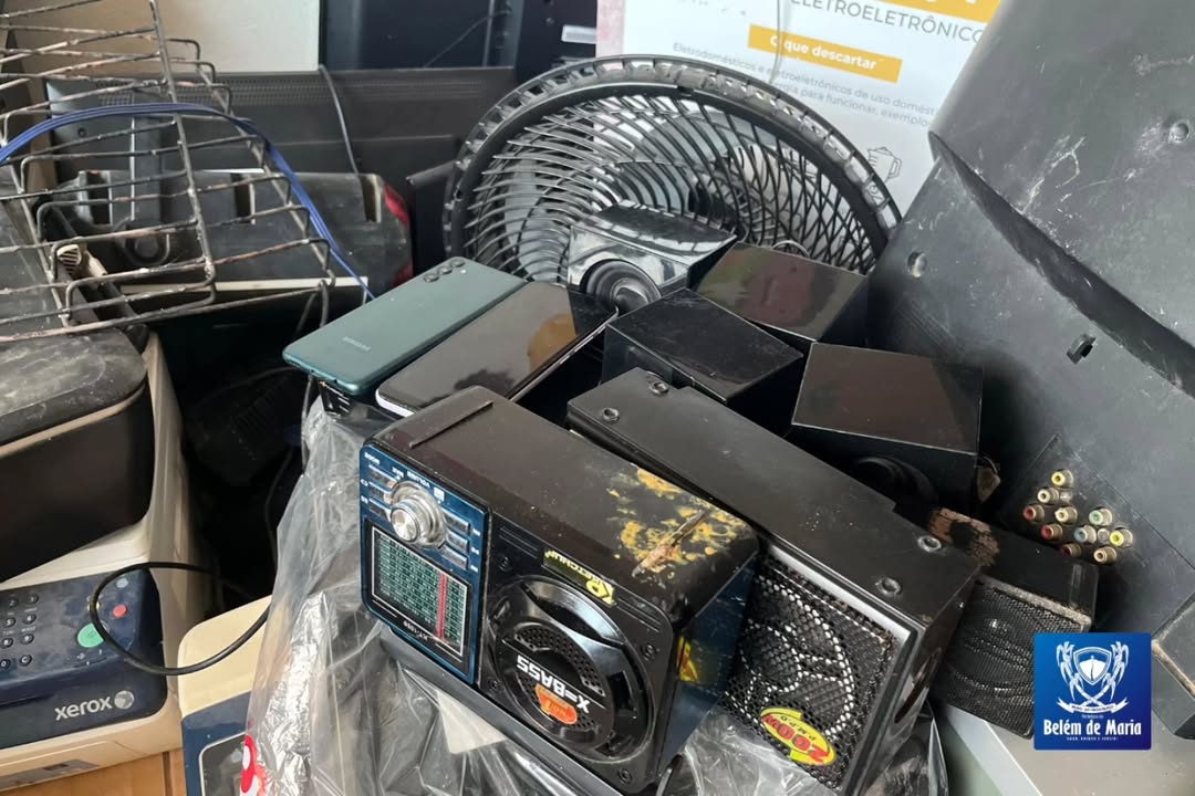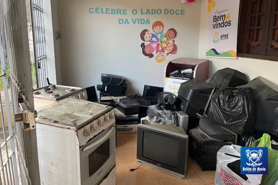 Foram arrecadados eletrodomésticos e eletrônicos quebrados, que serão reciclados e convertidos em doações para a APAE.