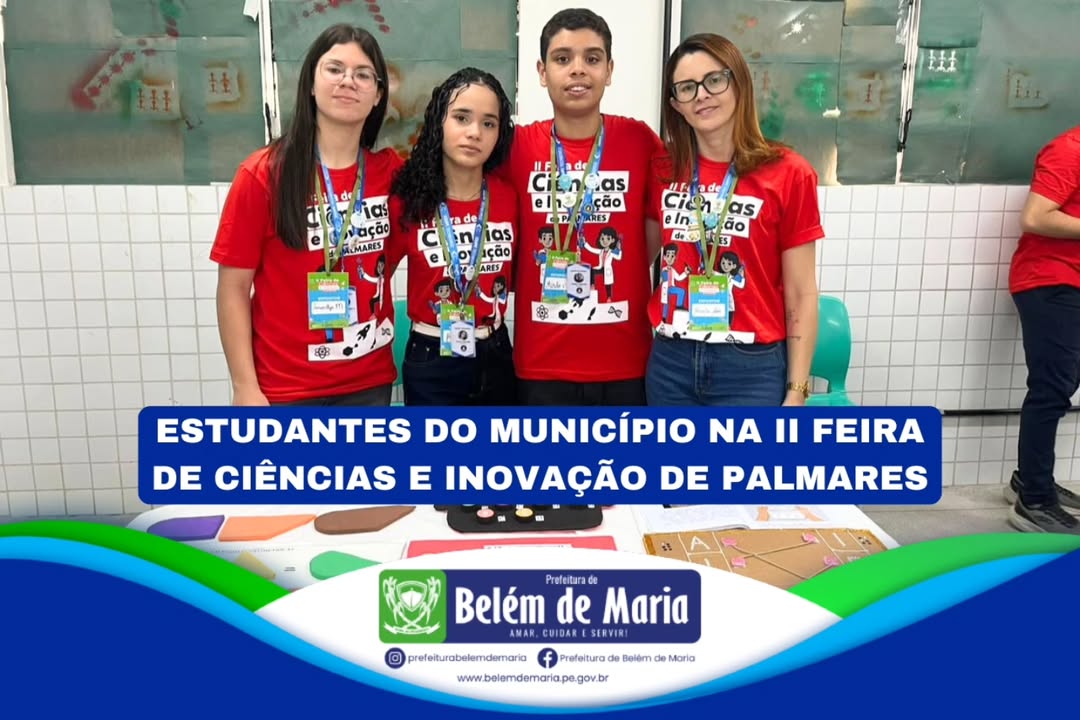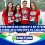 Nos dias 4 e 5 de novembro, os estudantes Amarillys Mirella, Jhúlia Beatriz e Murilo Vinícius, da EREF Adauto Carício, participaram da II Feira de Ciência e Inovação de Palmares, apresentando o projeto “Ver com as Mãos”, desenvolvido sob a mentoria da professora Mônica Alves.