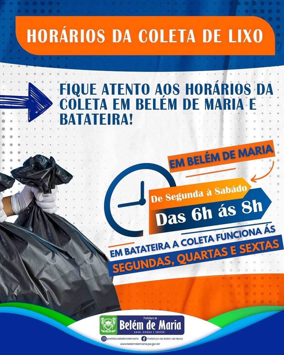 Em Belém de Maria e Batateira, os horários de coleta de lixo são bastante organizados, garantindo que a cidade se mantenha limpa e agradável para todos os moradores. A coleta ocorre de segunda a sábado, das 6:00 às 8:00 da manhã. É importante que os moradores coloquem seus resíduos para fora antes desse horário, para que a coleta possa acontecer e o recolhimento do lixo de possa funcionar de forma eficiente.